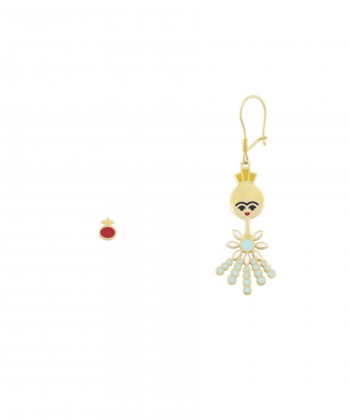 گوشواره نامتقارن یلدا با تاج خورشیدی و پیراهن گل آذین و انارک درریس Doris کد P4472
