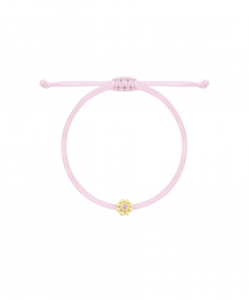 دستبند نخی صورتی کمرنگ گل سه بعدی وسط نگین صورتی درریس Doris کد P4955