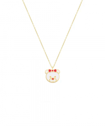 گردنبند خرسی سفید با پاپیون قرمز درریس Doris کد P4313