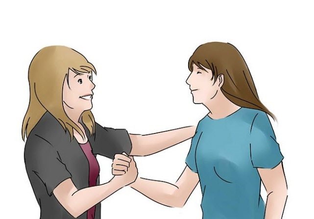 دست دادن نزدیک و باوقار یا دست گذاشتن روی شانه طرف مقابل راه دیگری برای نشان دادن صمیمیت است. تماس از تاثیر بسیار زیادی برخوردار است. نه باید خیلی نزدیک ایستاد و تماس فیزیکی داشت و نه باید بسیار دور ایستاد. بلکه باید فاصله مناسب را نگه داشت. زیرا این دست دادن و صمیمت موانع غریبگی را از بین شما برمی دارد.