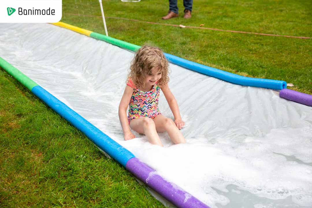 اگر بچه‌ها عاشق پارک‌های آبی هستند اما نمی‌خواهید هزینه زیادی بپردازید، چرا یک سرسره آبی خانگی درست نکنید؟ فقط کافی است یک روکش پلاستیکی بزرگ روی چمن یا حیاط پهن کنید، روی آن آب بریزید و کمی مایع صابون اضافه کنید. حالا بچه‌ها (و حتی بزرگ‌ترها!) می‌توانند سر بخورند و از یک بازی تابستانی خنک و هیجان‌انگیز لذت ببرند.