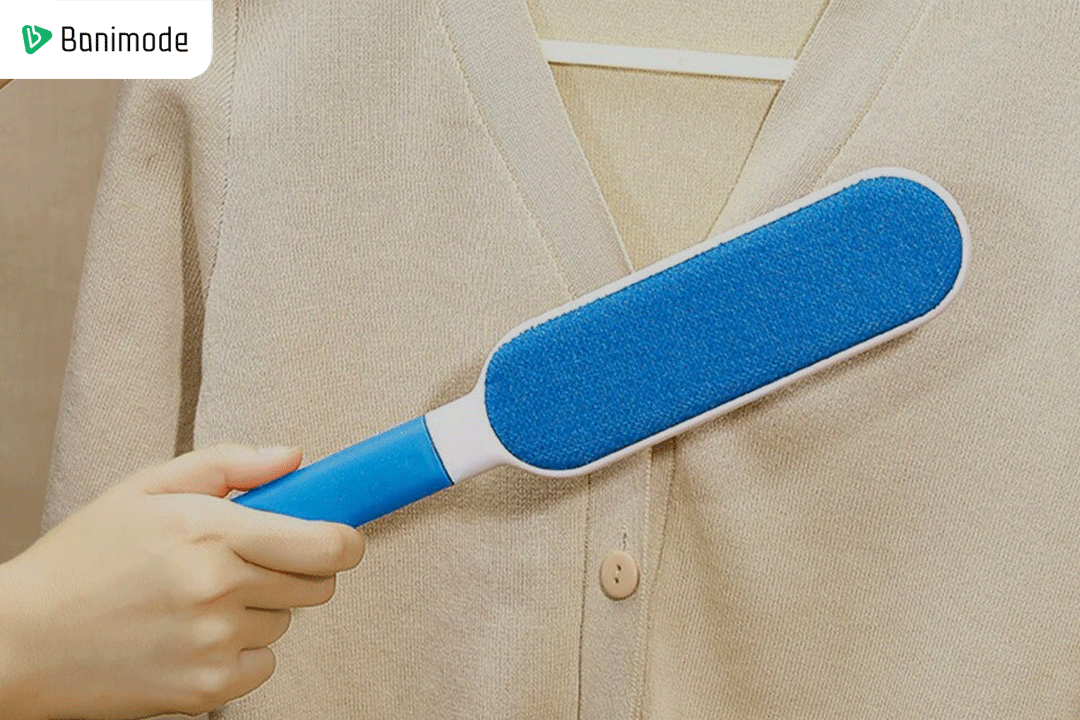 - استفاده از غلتک پرزگیر: برای این منظور غلتک چسبی را روی سطح پرزدار به صورت مکرر بکشید. این روش سریع و آسان برای پرزهای سطحی به خوبی جواب میدهد اما برای پرزهای عمقی و گلوله ای چندان راهگشا نیست.