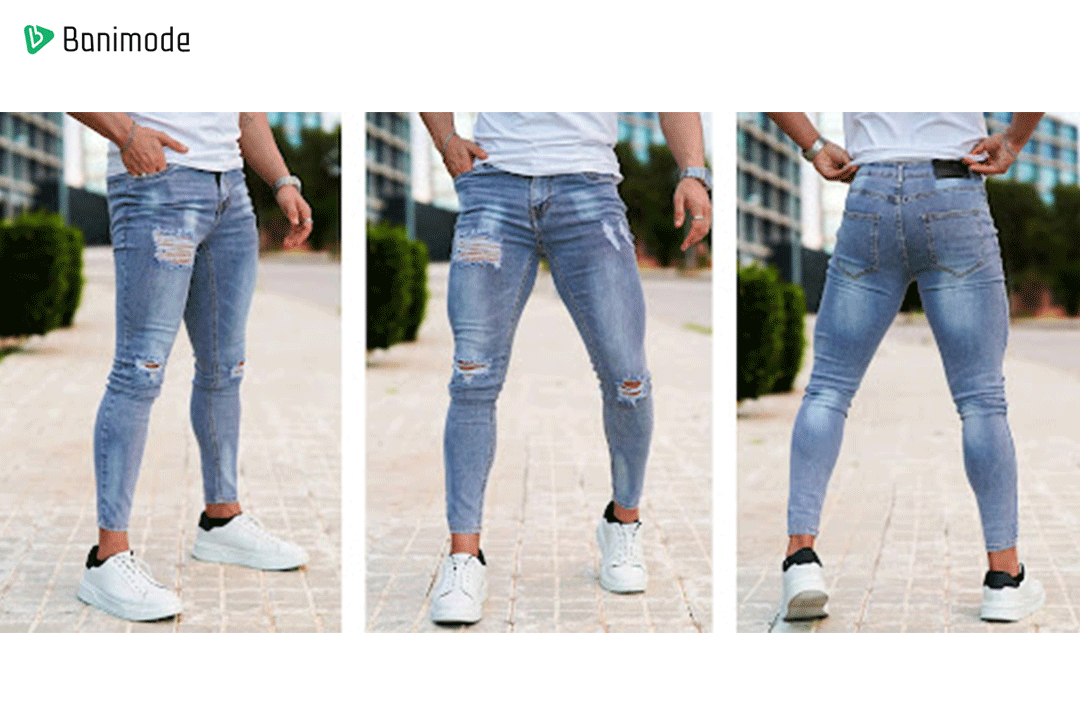شلوار جین اسکینی معمولاً تنگ و چسبان است و به خوبی روی پاها مینشیند. این طراحی باعث میشود که اندامها به خوبی نمایان شوند.